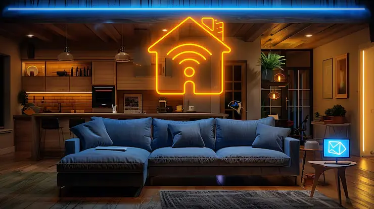كما نعمل على توفير التقنية لكامل المنزل ضمن مشاريع المنازل الذكية التي ترتبط بأنظمة أتمتة (إضاءة، أمان، تبريد)، ولوحات كهربائية جاهزة للطاقة الشمسية.